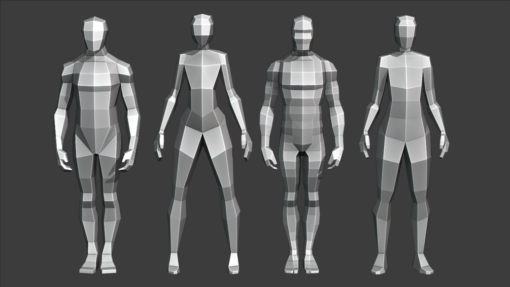 4 low poly male and female base meshes